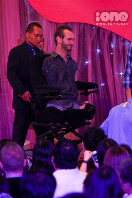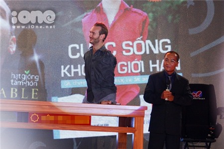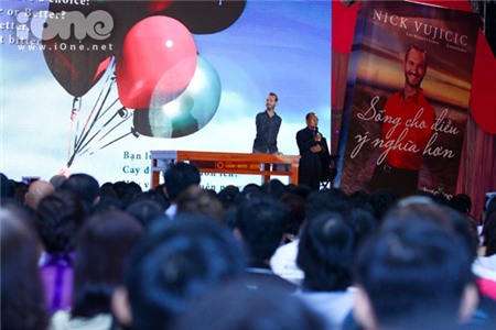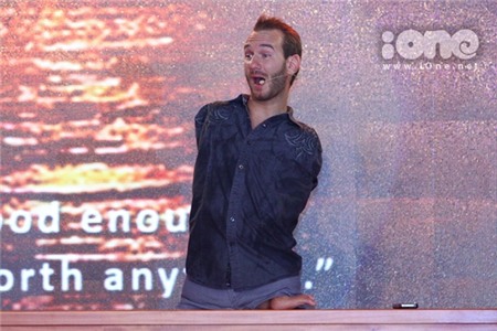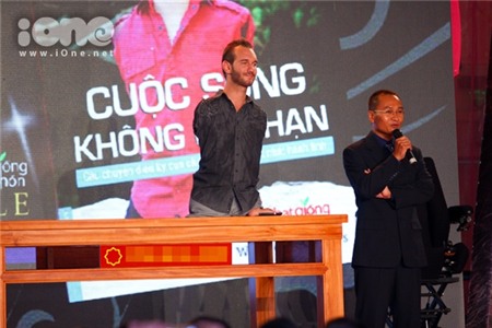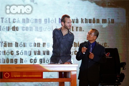 | Trong buổi giao lưu đầu tiên tại Việt Nam tối qua 22/5, khán giả Việt được diện kiến chàng trai Nick Vujicic với khả năng diễn thuyết chinh phục đông đảo người nghe. |