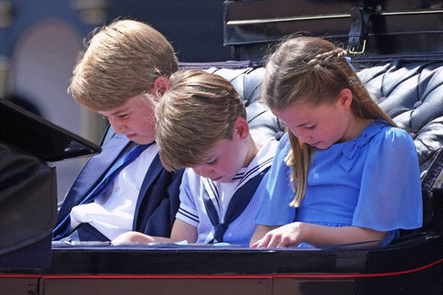 Công chúa Charlotte và em họ Mia Tindall cũng được trông thấy đang đùa nghịch với nhau khi sự kiện diễu hành diễn ra. Điều này khiến Công nương Kate phải cố gắng tìm cách nhắc nhở hai đứa trẻ hoàng gia nên chú ý vào sự kiện.