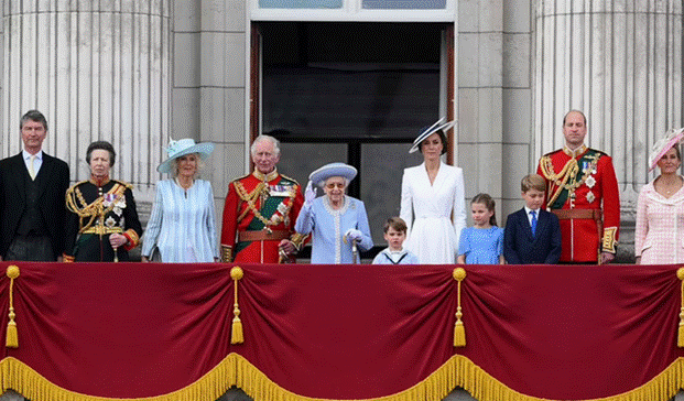 Thái tử Charles năm nay đảm nhận vai trò thị sát và duyệt đội hình, thay thế cho Nữ hoàng Elizabeth II. Người đứng đầu hoàng gia đã xuất hiện trên ban công Cung điện cùng với các thành viên cao cấp của gia đình. Nữ hoàng nở nụ cười tươi rạng rỡ trước những màn biểu diễn kỷ niệm 70 năm trị vì của bà.