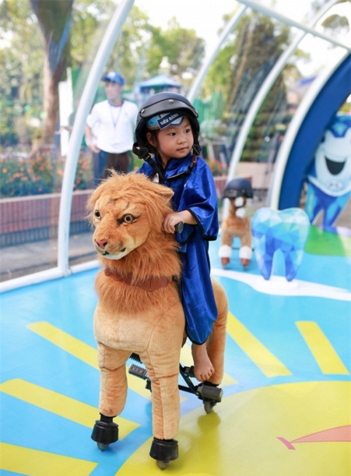 Lúc đầu do trời nắng gắt nên bé Cadie tỏ ra lạ lẫm với các trò chơi…