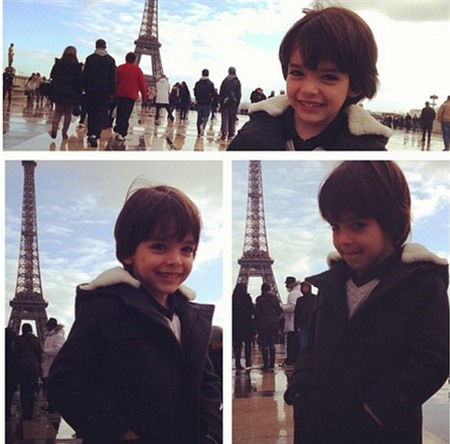 Vẻ bẽn lẽn, dễ thương của Luca khi cậu nhóc chụp hình trước chân théo Eiffel khi đi du lịch cùng bố mẹ. |