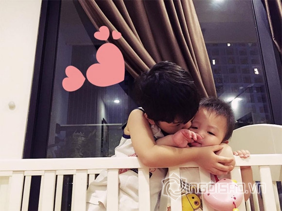 Hai bé Khải Minh và Khải Nguyên rất tình cảm.