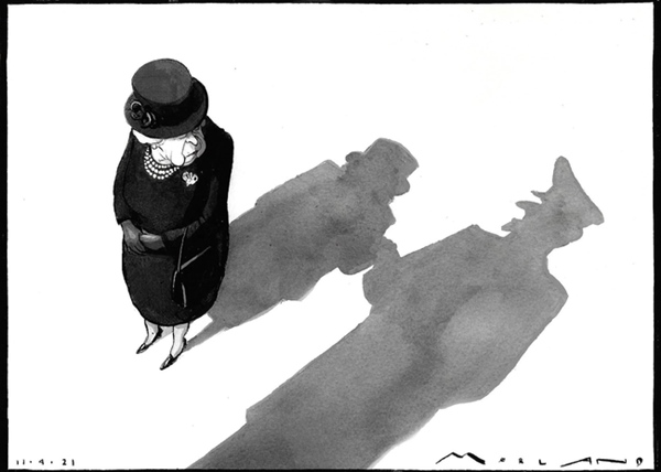 Thật khó có thể tưởng tượng được nỗi cô đơn, trống vắng mà Nữ hoàng đang phải trải qua khi mất đi người chồng yêu quý. Trong đám tang, có một khoảnh khắc máy quay ghi lại cho thấy Nữ hoàng ngồi một mình một góc trong nhà thờ, bà lặng lẽ cúi đầu như để dành tất cả lòng thành kính tiễn đưa chồng về nơi an nghỉ.