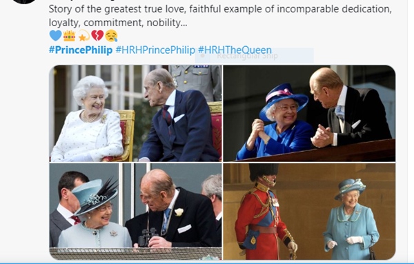 Trên mạng xã hội, cư dân mạng cũng chia sẻ một vài bức ảnh thể hiện nỗi buồn to lớn về sự ra đi của Hoàng tế Philip, đồng thời bày tỏ sự đồng cảm với Nữ hoàng.