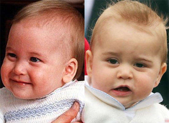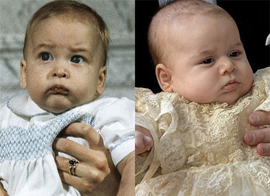 Hoàng tử William khi 6 tháng tuổi và Hoàng tử George sau ba tháng chào đời. Dù cách nhau 3 tháng song vẻ bụ bẫm của cả hai lại rất giống nhau