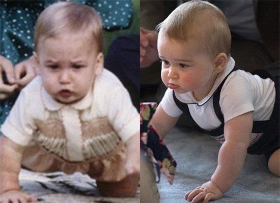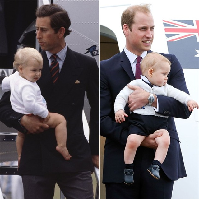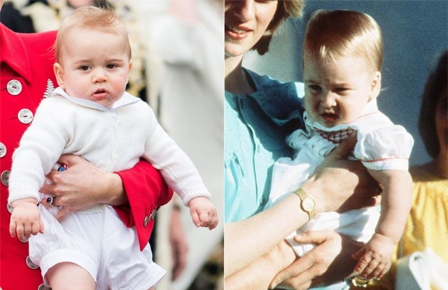 Hoàng tử William (trái) thời điểm mới 9 tháng tuổi, đi cùng cha mẹ trong hành trình đến Australia. Nhiều người nhanh chóng nhận ra những nét tương đồng giữa hai cha con Hoàng tử William - Hoàng tử George lúc ở độ tuổi tương đương nhau