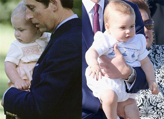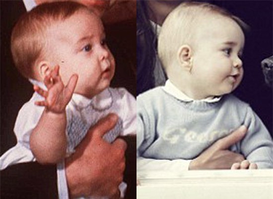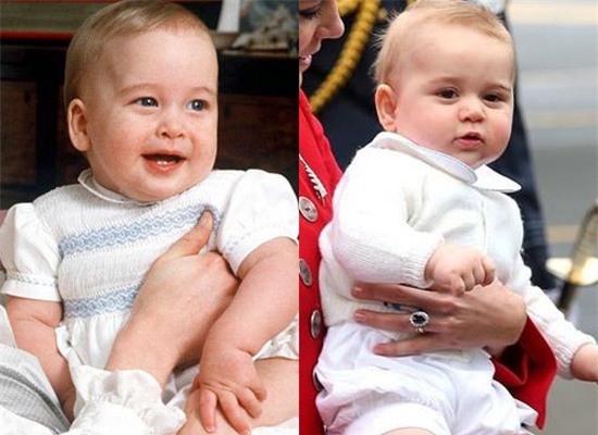 Từ những bức ảnh ngày ấy - bây giờ, có thể dễ dàng nhận ra Hoàng tử George sở hữu nhiều nét rất giống bố là Hoàng từ William.
