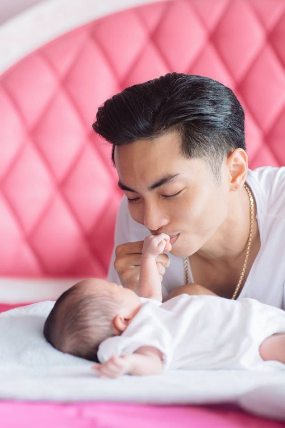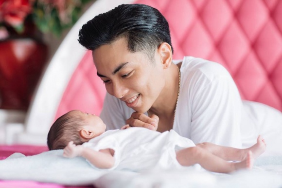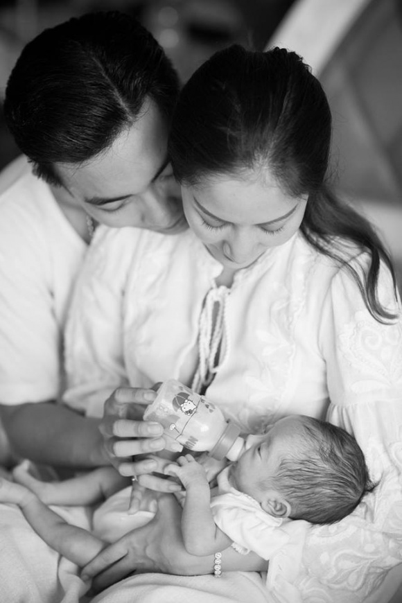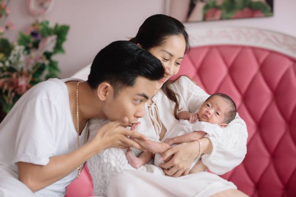 Vợ chồng Khánh Thi - Phan Hiển âu yếm nhìn con thứ hai.