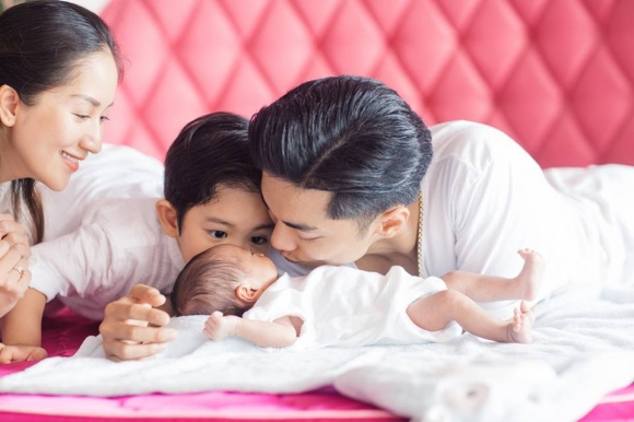 Để chào đón thành viên mới chào đời, vợ chồng Khánh Thi và Phan Hiển đã thực hiện một bộ ảnh hạnh phúc, vui vẻ bên hai con.