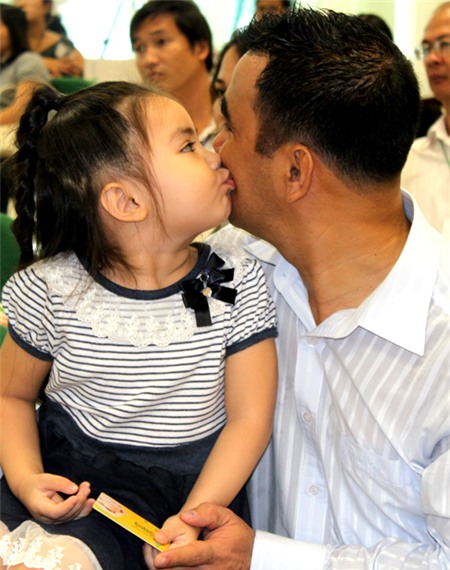 Cô con gái lớn hôn má bố khiến Quyền Linh lâng lâng hạnh phúc.