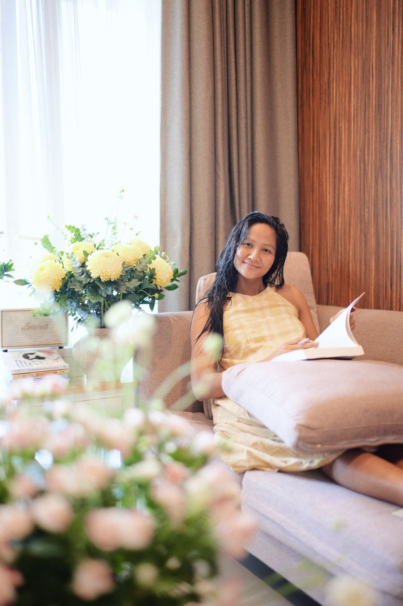 Trong hình, hoa hậu H'Hen Niê tự tin để mặt mộc. Thời điểm sát ngày sinh, vóc dáng của nàng hậu không thay đổi gì nhiều ngoài chiếc bụng tròn ủm, lớn lên từng ngày.