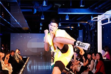 | Hồ Vĩnh Khoa với tạo dáng cực lạ trên sân khấu. |