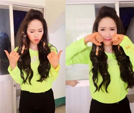 | Bảo Thy "te tua" sau khi tham gia một gameshow. |