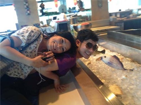 | Trần Thu Hà lộ mặt ngơ ngác trong hình chụp với Bằng Kiều. |