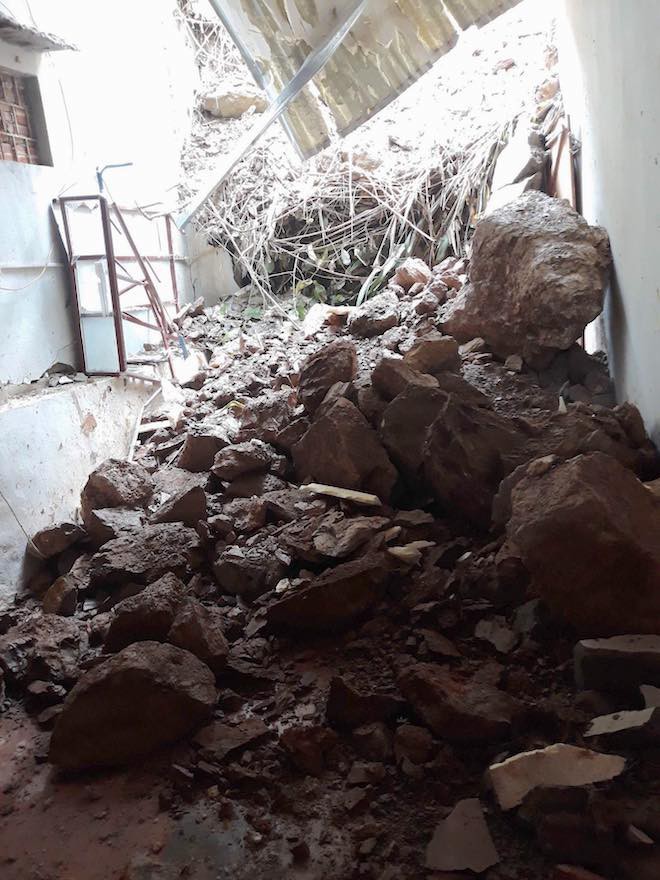 Gần 20 nhà dân cùng dãy bị đất đá sạt lở, khiến nhà bị hư hỏng.