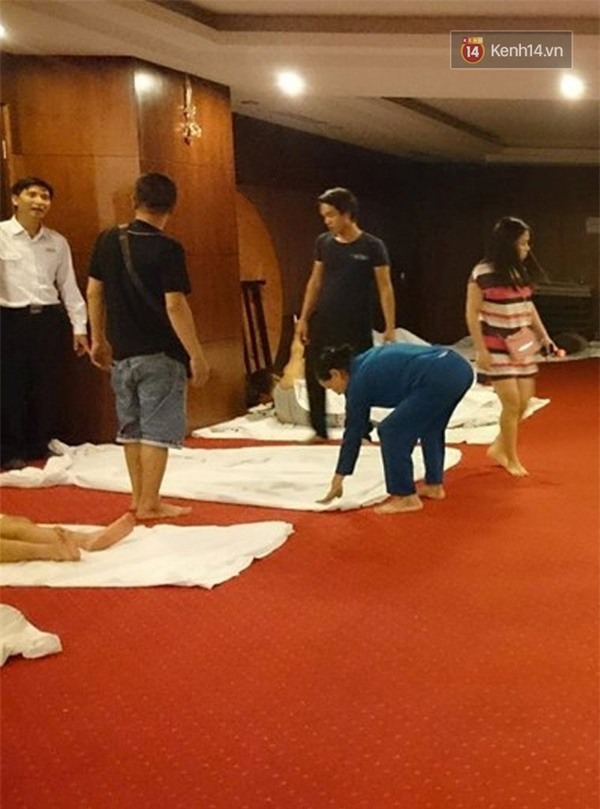 lớn người dân trải chăn nằm ngủ ở hội trường của khách sạn.