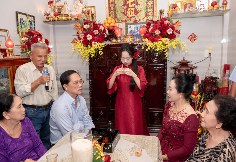 “Đó là ông út của tôi (em trai út của ông nội cô dâu – PV). Ông sống gần nhà nên ngày thường rất thân thiết với gia đình tôi”, Nhi kể.