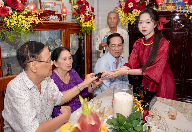 Ở tuổi 24, cô đã trưởng thành, chín chắn, có công việc ổn định khiến gia đình yên tâm, tự hào. Nhưng trong khoảnh khắc làm lễ xuất giá, thấy người thân vẫn yêu thương, bao bọc như đứa trẻ, cô không khỏi xúc động.