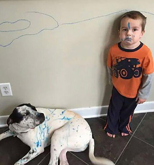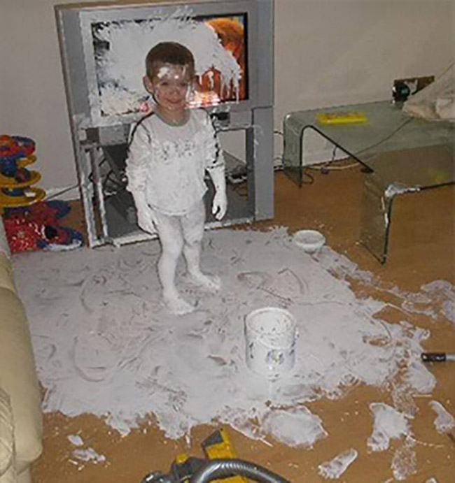 Bé thỏa sức thể hiện tài năng hội họa khắp mọi nơi