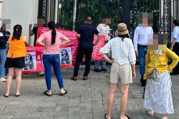 Phụ huynh căng băng rôn yêu cầu Chủ tịch Hội đồng quản trị trường trả nợ hồi tháng 9/2023.