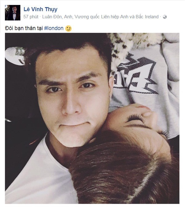 Trong bức ảnh, Vĩnh Thụy và Hoàng Thùy Linh tựa đầu, dựa vai nhau rất tình cảm. Hiếm khi nào Vĩnh Thụy công khai khoảnh khắc ngọt ngào đến vậy với Hoàng Thùy Linh trên trang cá nhân. Mặc dù đăng tải một bức ảnh rất tình tứ nhưng Vĩnh Thụy chỉ viết một dòng "caption" ngắn gọn và gây hoang mang: "Đôi bạn thân tại London". Tuy công khai là "bạn thân", nhưng nhiều fan lại cho rằng đây là cách nói bóng gió, ám chỉ về tình yêu của chàng siêu mẫu điển trai mà thôi.
