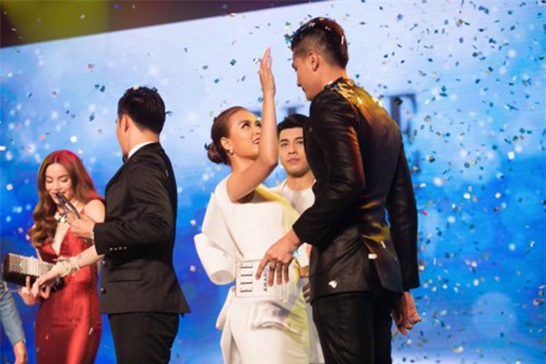 nữ ca sĩ gợi cảm Hoàng Thùy Linh. Vẻ tình tứ của cặp đôi nổi tiếng khiến