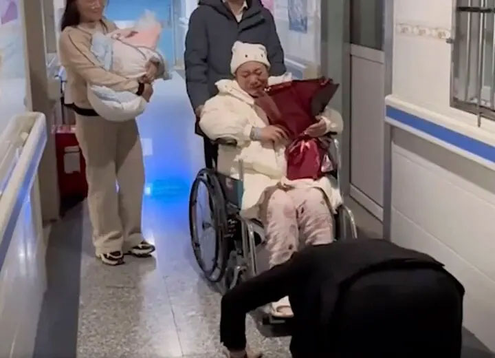 Người đàn ông giấu tên ở Mai Châu, Quảng Đông, Trung Quốc chia sẻ đoạn video lên mạng Douyin, thông báo sự ra đời của đứa con thứ tư - cậu con trai tuổi rồng. Trước đó, vợ chồng anh đã có 3 con gái. Người vợ ngồi trên xe lăn, tay cầm bó hoa chồng tặng. Người đàn ông quỳ xuống trước mặt vợ, sau đó ôm và hôn cô, khiến cô cảm động đến mức ôm mặt, lau nước mắt.