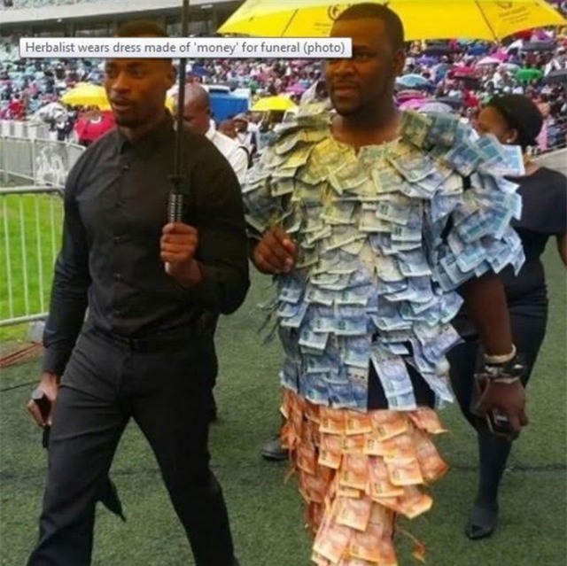 Michael Andile Dlamini, một thầy lang cực thành công ở Nongoma được mọi người biết đến với biệt danh Mzimb’okhalimali (tạm dịch là cơ thể chảy ra tiền). Biệt danh này bắt đầu lưu hành sau khi anh mặc lên người bộ vét có đính tiền thật từ cổ đến chân.