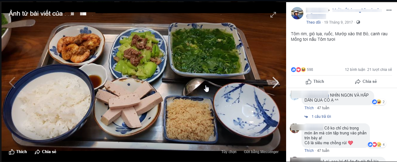 Mâm cơm vừa ngon, vừa đẹp mắt do chính mẹ chồng nấu những tưởng sẽ được chị em ngợi khen, ngưỡng mộ. Nào ngờ, cô gái lại bị nhận về cơn mưa gạch đá tới mức phải xóa bài.