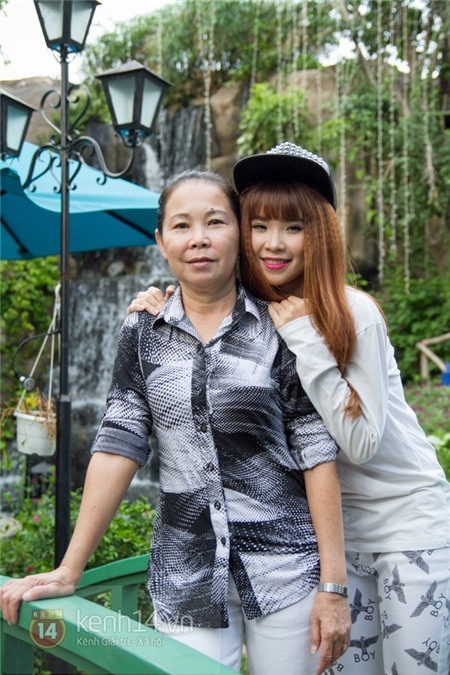 - Thật sự thì đây là điều mình phải chấp nhận. Lúc đó điều tôi cần làm là tiết chế cảm xúc của mình. Mỗi khi đi diễn, nhìn xuống không thấy mẹ thì tôi bất an lắm. Mình mỗi lúc một lớn hơn, má Năm cũng già đi. Nhiều khi mẹ cũng quên cái này, quên cái kia, có khi còn quên cả đĩa nhạc, có hôm thì lại nhớ nhầm lịch diễn. Cho nên tôi cũng bắt đầu chuẩn bị tinh thần rồi. Mọi lần thì mẹ phụ làm tóc, hôm nay tôi tự làm tóc cho mình luôn nè. Không biết làm cũng tập làm, bị phỏng hoài à, nhưng nhìn cũng dễ thương hén (cười).