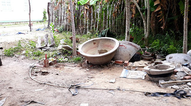 Chiếc chậu kiểng nghi phạm dùng để úp lên thi thể nạn nhân sau khi sát hại. Ảnh: Tuấn Kiệt.