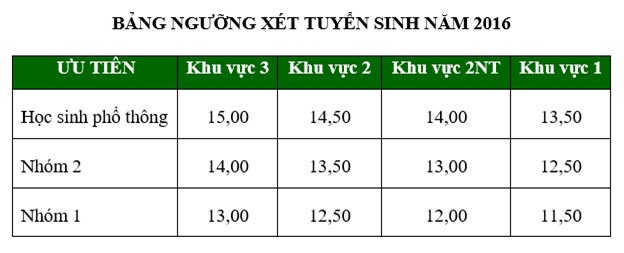 Theo đó, đối tượng đăng ký xét tuyển là thí sinh tốt nghiệp trung học phổ thông (THPT), có hạnh kiểm xếp loại khá trở lên ở các lớp 10, 11, 12. Thí sinh đủ điều kiện xét tuyển vào đại học theo quy định của Quy chế tuyển sinh, có kết quả thi trung học phổ thông quốc gia (tại các cụm thi do các trường đại học chủ trì) của 3 môn Toán học, Hóa học, Sinh học đạt từ 15 điểm trở lên (không môn nào có điểm dưới 1,0) đối với học sinh phổ thông ở khu vực 3. Mức chênh lệch giữa hai nhóm đối tượng kế tiếp là 1,0 (một điểm), giữa hai khu vực kế tiếp là 0,5 (nửa điểm).