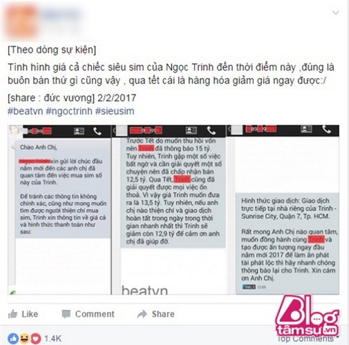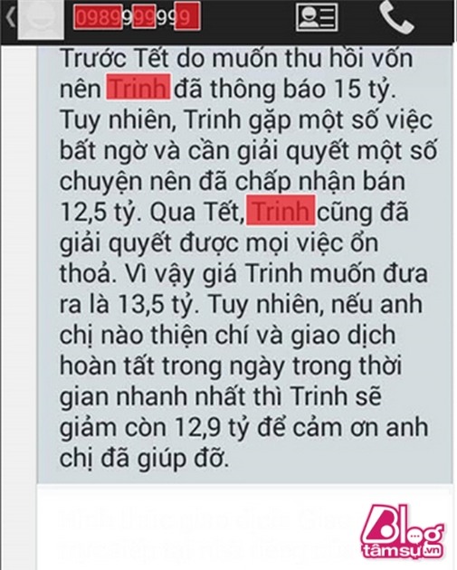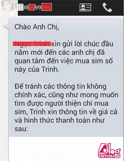 Trở lại chuyện của chiếc SIM tiền tỷ, mới đây, một diễn đàn nổi tiếng trên Facebook ở Việt Nam đã chia sẻ tin nhắn được cho là Ngọc Trinh chào bán siêu SIM của mình. Cụ thể, ảnh chụp tin nhắn từ số 0989999999 với nội dung khá dài, nói về chuyện thay đổi giá, nâng lên đặt xuống tùy từng thời điểm và mức giá thiện chí cuối cùng của hiện tại là 12,9 tỷ đồng. Nếu như chuyện này đúng là sự thật thì Nữ hoàng nội y đã phải chịu lỗ khá nhiều tiền trong một khoảng thời gian ngắn. Còn về phía Ngọc Trinh vẫn chưa có phát ngôn gì thêm về việc bán SIM cũng như giá cả thay đổi như thế nào.