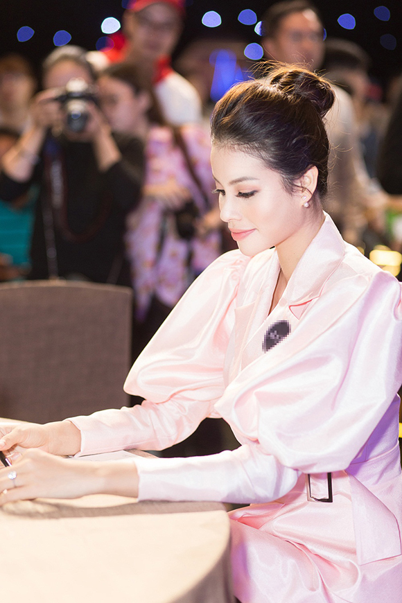 Có mặt tại sự kiện, Phạm Hương chọn bộ trang phục màu hồng nhạt không cầu kỳ nhưng vẫn đầy nữ tính. Hoa hậu khoe khéo đôi chân dài miên man, thẳng tắp và luôn nở nụ cười nồng nhiệt với các khách mời có mặt tại chương trình.