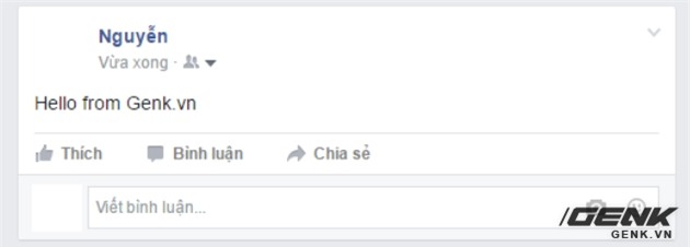 Bước 9: Kiểm tra trên Facebook. Nội dung "Hello from Genk.vn" đã xuất hiện đầy đủ trên Facebook. Vậy là thành công