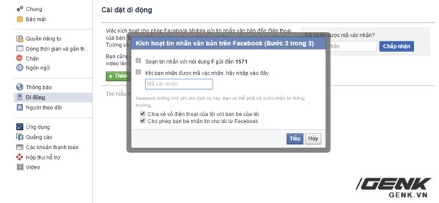 Bước 5: Nhập mã xác nhận mà Facebook gửi cho bạn vào bước 3.