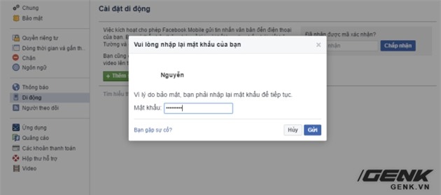Bước 6: Nhập mật khẩu Facebook để tiếp tục.