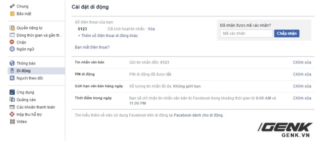 Bước 7: Số điện thoại đã được chấp nhận. Trong trường hợp muốn điều chỉnh các điều khoản, hãy chọn các đầu mục bên dưới bao gồm: Tin nhắn văn bản, PIN di động, Giới hạn văn bản hàng ngày, hay Thời điểm trong ngày.