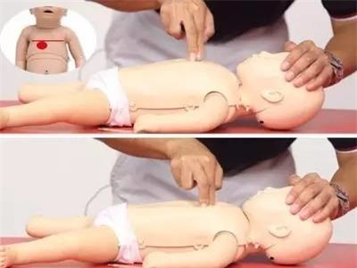 cần đặt gốc bàn tay trên nửa dưới xương ức của bé, rồi đặt bàn tay còn