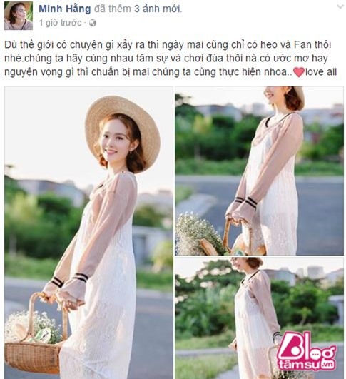 Tuy nhiên, không quá để tâm đến vấn đề này, Minh Hằng vẫn ra sức trấn an fan, cô tuyên bố rằng mình chỉ cần fan ở bên cạnh: “Dù thế giới có chuyện gì xảy ra thì ngày mai cũng chỉ có Heo và Fan thôi nhé. Chúng ta hãy cùng nhau tâm sự và chơi đùa thôi nà, có ước mơ hay nguyện vọng gì thì chuẩn bị mai chúng ta cùng thực hiện nha”.
