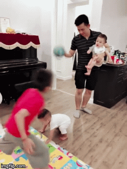 Bé Peter chơi bóng cùng với chồng và con của hot mom Hằng Túi.