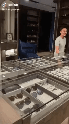 Ngoài ra, anh còn giới thiệu với bạn bè bộ sưu tập phụ kiện, giày dép được đặt gọn gàng trong những chiếc kệ, tủ kính. Và đặc biệt là bộ sưu tập túi xách "khủng" toàn những món đến từ các thương hiệu xa xỉ nổi tiếng của Đàm Thu Trang. Mặc dù không có thói quen khoe đồ hiệu hay "chiến tích" mua sắm nhưng bà xã Cường Đô La cũng sở hữu kệ túi hiệu có giá trị lớn chẳng kém ai trong showbiz.