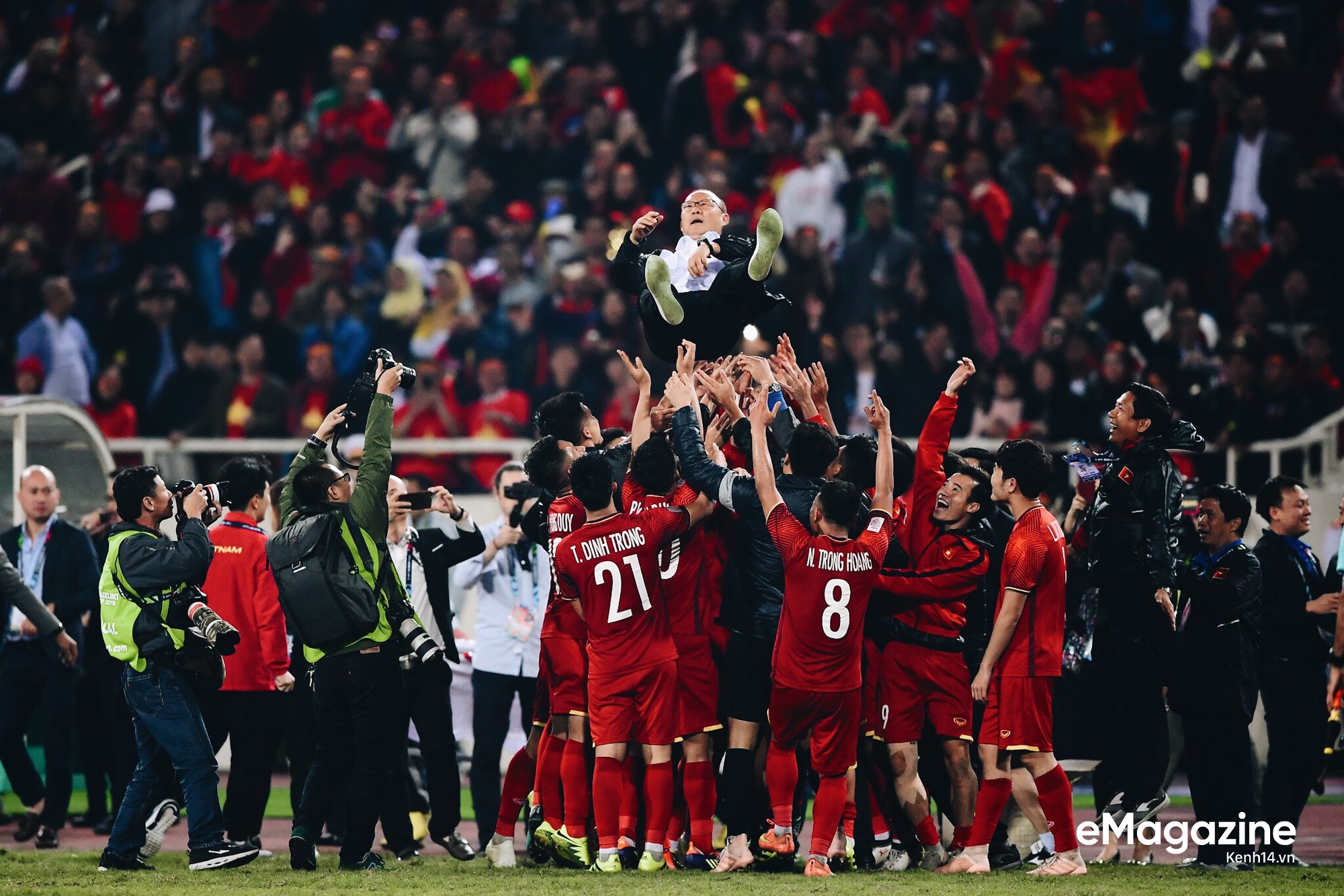 Và khi thời khắc ấy thực sự đến, cảm giác như niềm vui được vỡ òa giữa biển người áo đỏ. Không chỉ ở trong sân Mỹ Đình, mà ở khắp mọi miền mảnh đất hình chữ S cho tới nhiều vùng đất xa xôi nơi có những con người Việt Nam đang sinh sống và làm việc. Bốn chữ được hô vang nhiều nhất là “Việt Nam vô địch”.