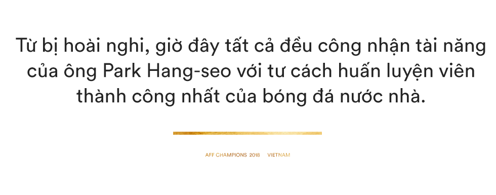 Tới AFF Cup, cuối cùng thầy trò ông Park cũng chạm tay vào Vàng thực sự. Từ bị hoài nghi, giờ đây tất cả đều công nhận tài năng của ông Park Hang-seo với tư cách huấn luyện viên thành công nhất của bóng đá nước nhà.