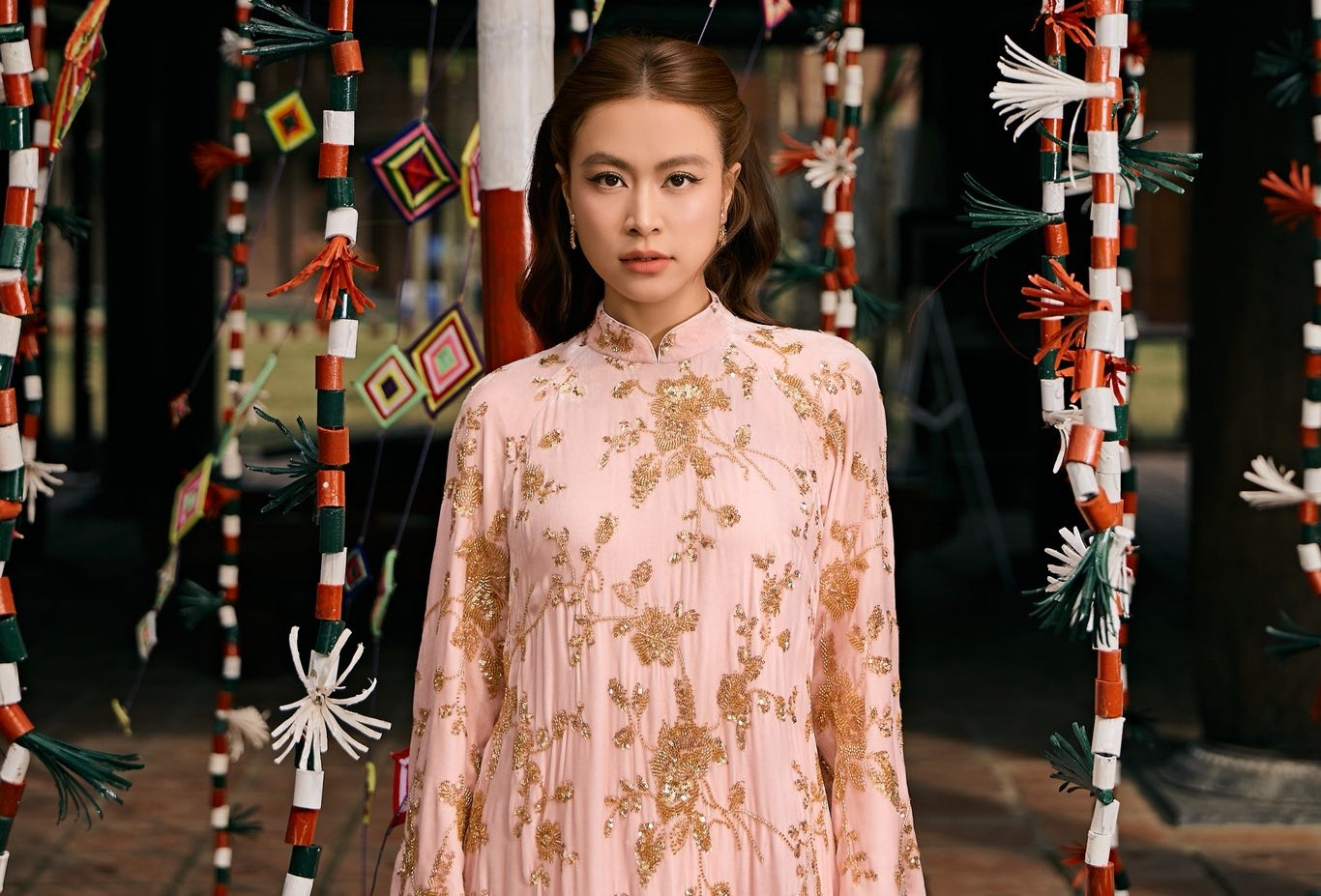 Hoa hậu Việt Nam 2024 Hà Trúc Linh chọn áo dài lụa cho những ngày Tết, đơn giản và nhẹ nhàng, nàng hậu không chọn áo dài kim sa.