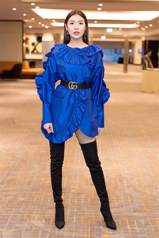 Dù chọn phong cách cá tính, thời thượng nhưng Á hậu Thúy Vân lại không được đánh giá cao bởi bộ đầm cô chọn quá nhiều chi tiết bèo nhúm đã thế lại không hợp với tông xanh coban thời thượng này.