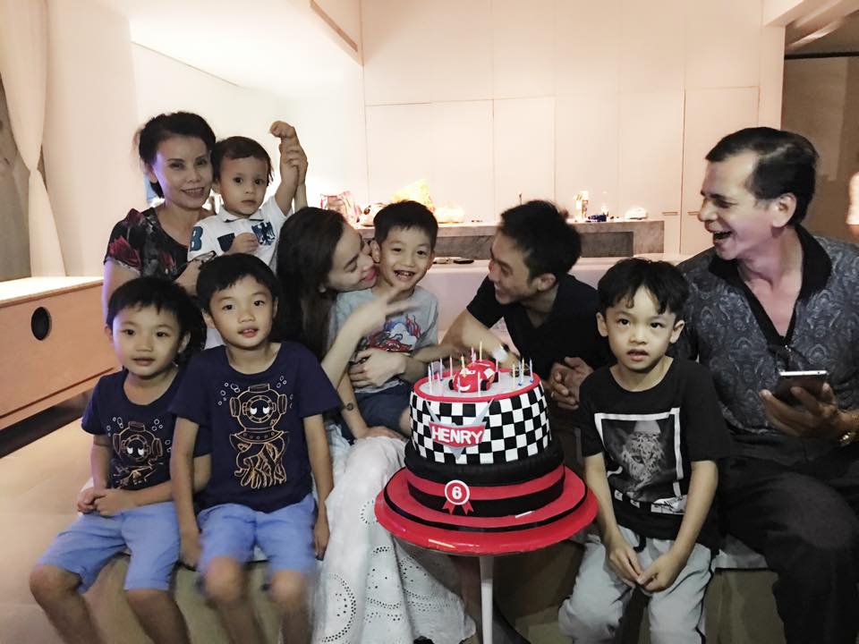 Sinh nhật Subeo năm 2016, đại gia phố núi ôm con vào lòng và cùng vợ cũ đốt pháo sáng để mừng quý tử sang tuổi mới. Bố mẹ của "nữ hoàng giải trí" không giấu được niềm vui khi nhìn cháu ngoại hạnh phúc trong vòng tay con gái và con rể cũ đón ngày đặc biệt.