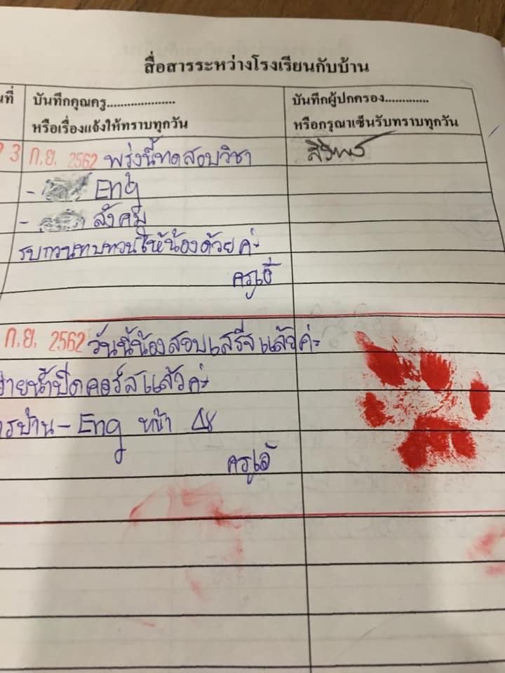 Và đây là kết quả! Cuốn sổ liên lạc đã được điểm chỉ vết chân mèo đỏ chóe!