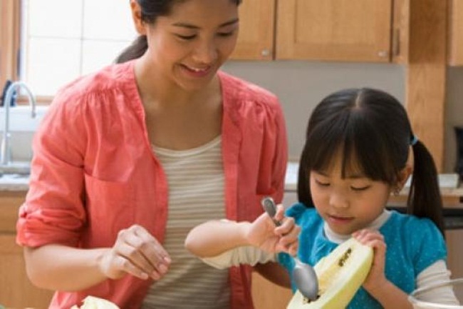 Việc dạy con sống tự lập có thể là việc hướng dẫn con tự nấu ăn. Trẻ biết nấu ăn có nghĩa là khi lớn lên trẻ sẽ tự lo được bữa ăn hằng ngày mà không có cha mẹ bên cạnh. Điều quan trọng là ngoài kỹ năng nấu, bạn cần hướng dẫn trẻ cách sử dụng các dụng cụ nhà bếp, tránh vật sắc nhọn.