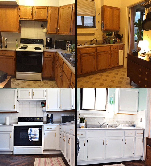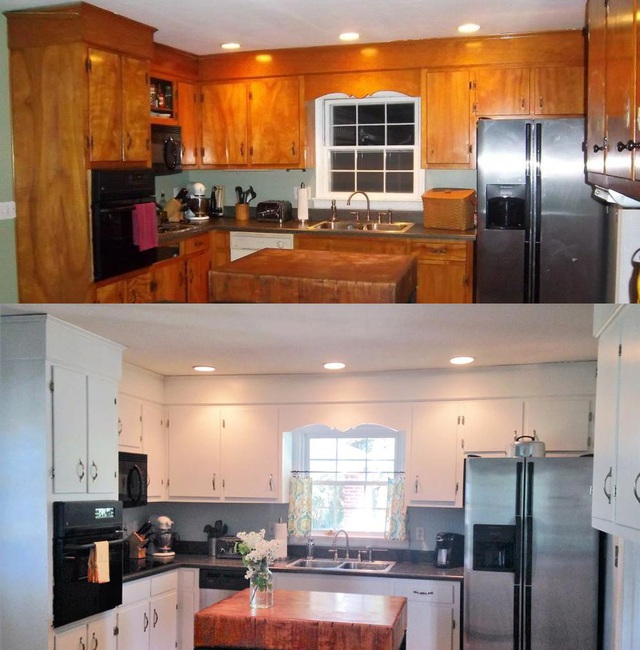 Những tủ gỗ đã khiến gian bếp trở nên tối màu, cục mịch dẫn đến cảm giác lỗi thời và chật hẹp. Từ khi thêm sơn trắng, gian phòng trông rộng rãi và hiện đại hơn rất nhiều.